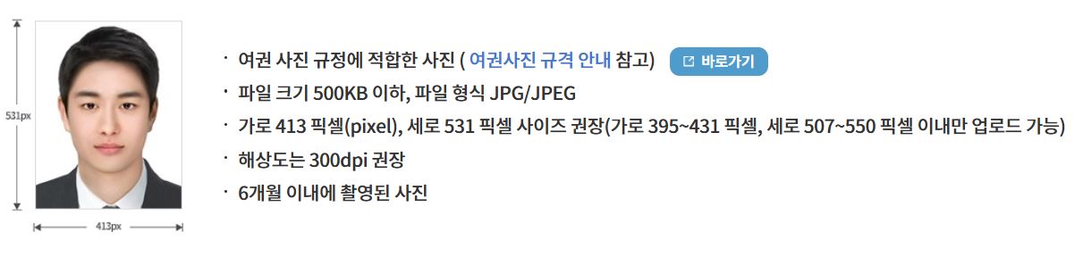 여권용 사진 1매(6개월 이내, 규격 엄수)를 준비해야 합니다.